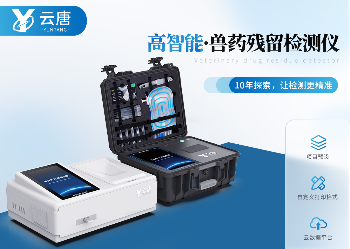 山东云唐智能科技有限公司生产的高智能兽药残留检测仪可快速检测瘦肉精激素类食品安全项目,包含盐酸克伦特罗、沙丁胺醇、莱克多巴胺、己烯雌酚,兽药残留、抗生素类残留、真菌毒素类残留、动物疫病类等检测。